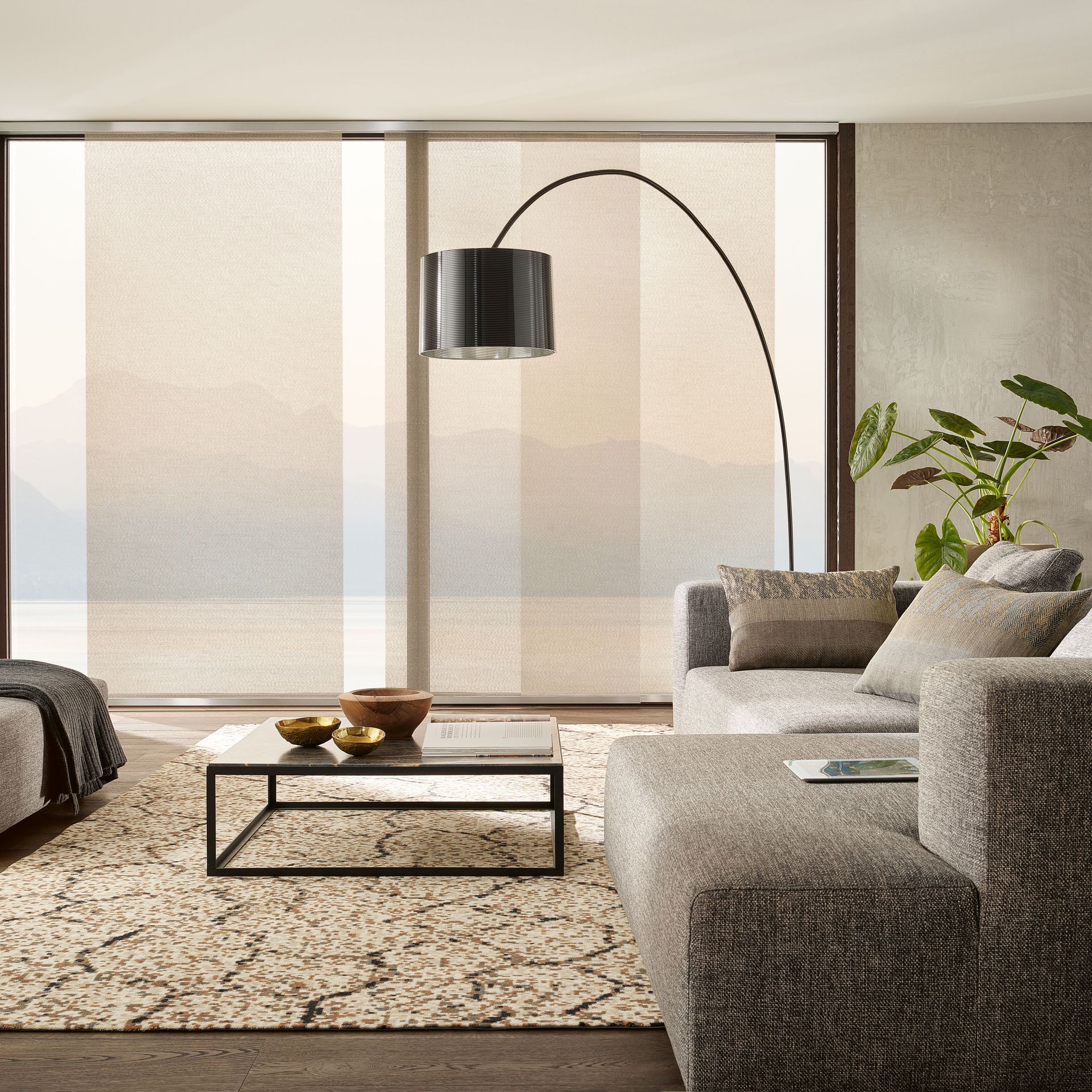 Wer die Symbiose aus puristischem Design, geraden Linien und funktionaler Beschattung für breite Fronten sucht, ist beim Flächenvorhang genau richtig. Durch die mehrläufigen Schienen können sowohl unterschiedliche Abdunkelungsstufen als auch verschiedenste Designs perfekt kombiniert und die Stoffe bzw. Behänge auch jederzeit ausgetauscht werden. In der Regel werden Flächenvorhangsysteme mittels Schleuderschiene oder Schnurzug bedient.