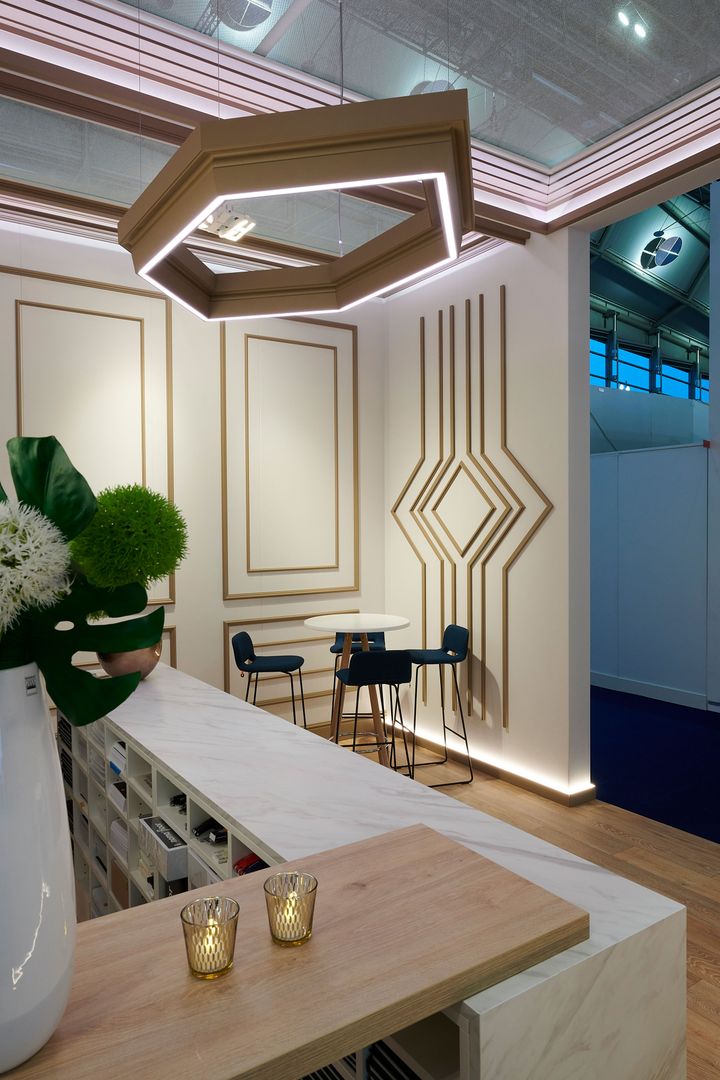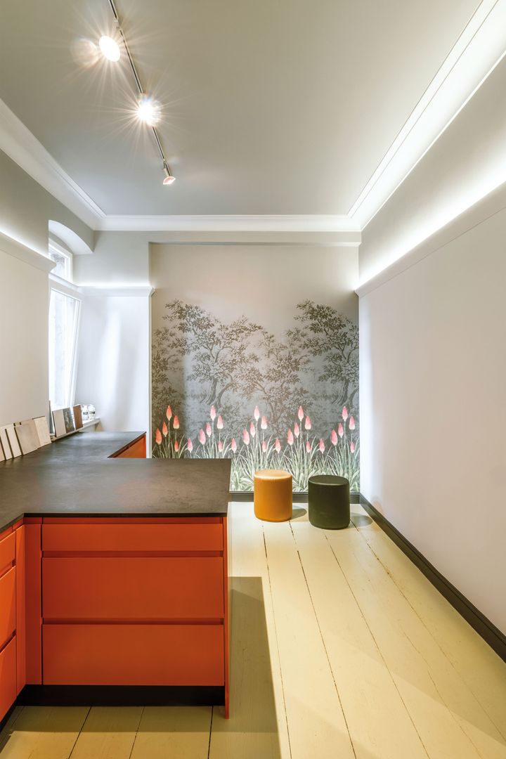 Mit direkter oder indirekter Beleuchtung kombinierbare Decken-, Wand- und Sockelleisten sowie Wanddekoraktionselemente schaffen ein gemütliches Ambiente und je nach Lichtintensität ein variables Raumgefühl.